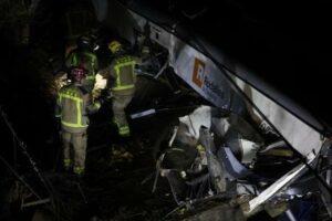 Los Bombers de la Generalitat trabajan en el lugar del accidente de un tren de Rodalies en GelidaAlberto Estévez / EFE